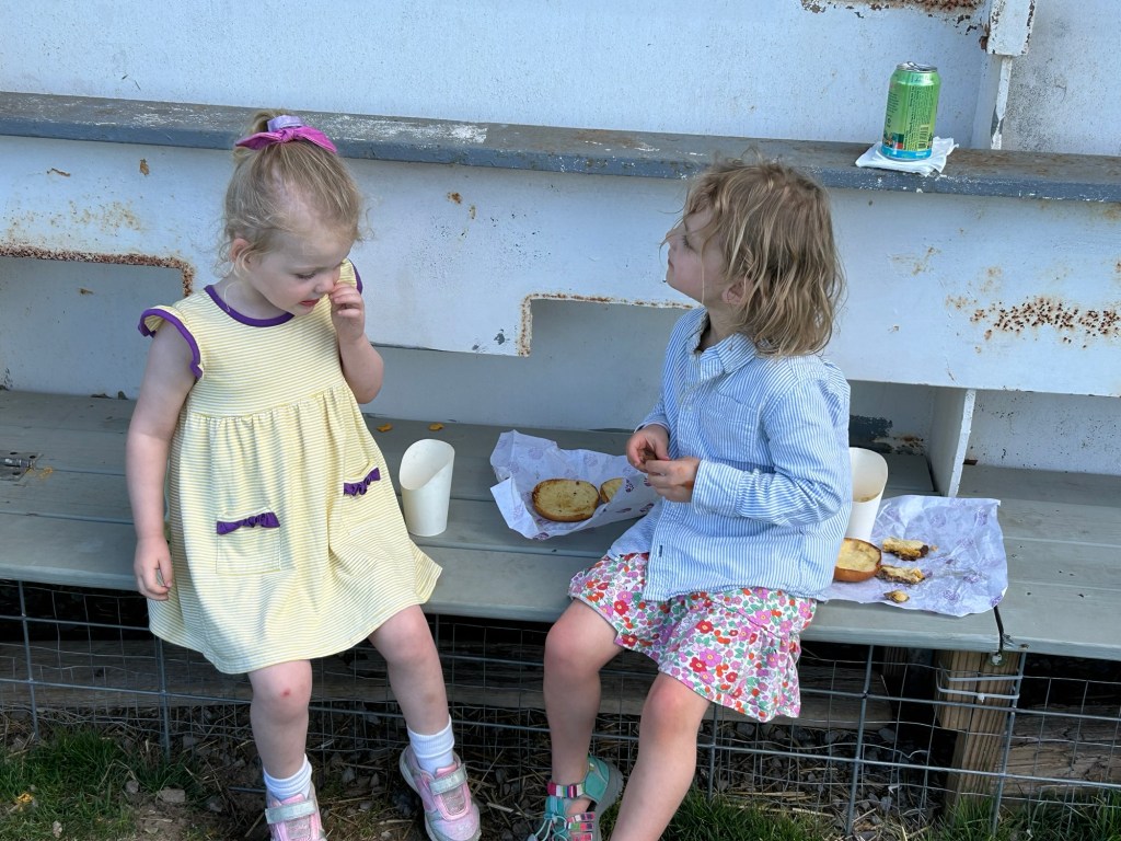 I think my daughter chose it because she could have grown-up time talking with her friends while her children played and ate their first snoballs of the season. My favorite part was Sammy snuggles. He’s my youngest grandson (7 months) who still loves to be held.