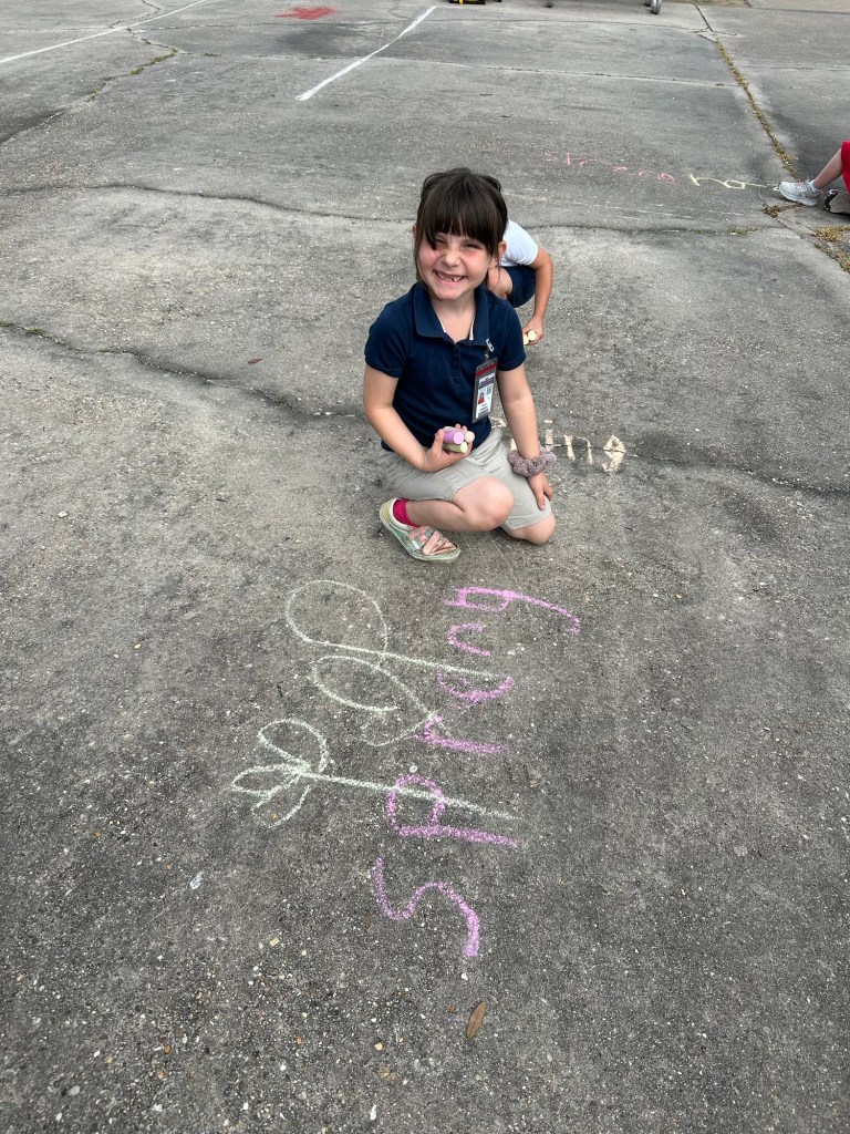Yesterday for my teaching artist program I was sent to Gueydan, pronounced gay-dahn, 46 miles west of me in New Iberia. I was so excited to be doing my very first Chalk-a-bration workshop. I was also nervous because I would be working with little kids, K, 1, and 2.