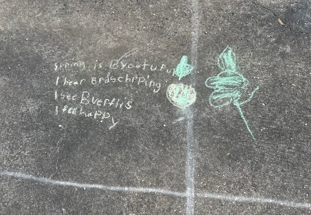 I love a good chalk-abration! When the snow finally melts and the rain stops and the sun finds its way back to New Jersey, we will all be outside decorating our side walks with words and images that have been hiding inside of us for months.