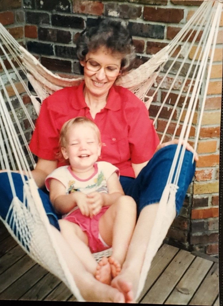 I’m sad that my mother is not here to see the book. The photo I had of her was with my oldest daughter sitting in a chair hammock.