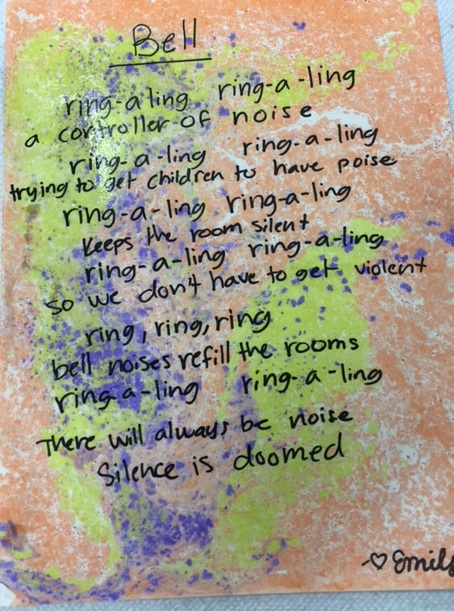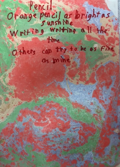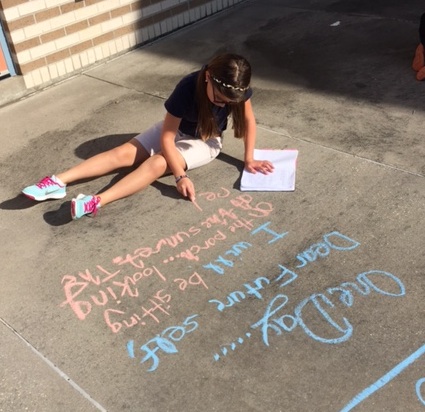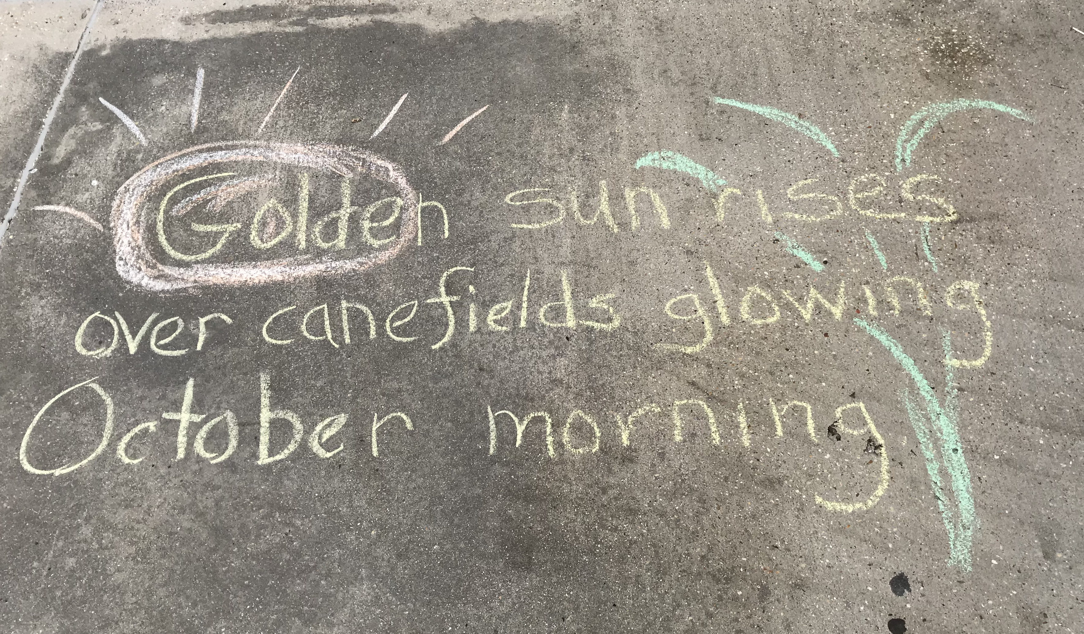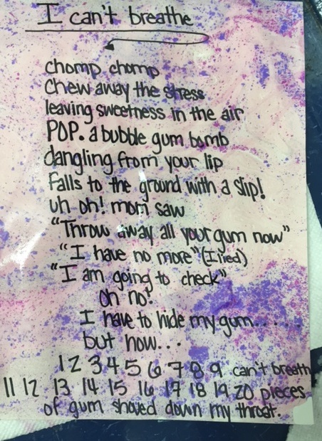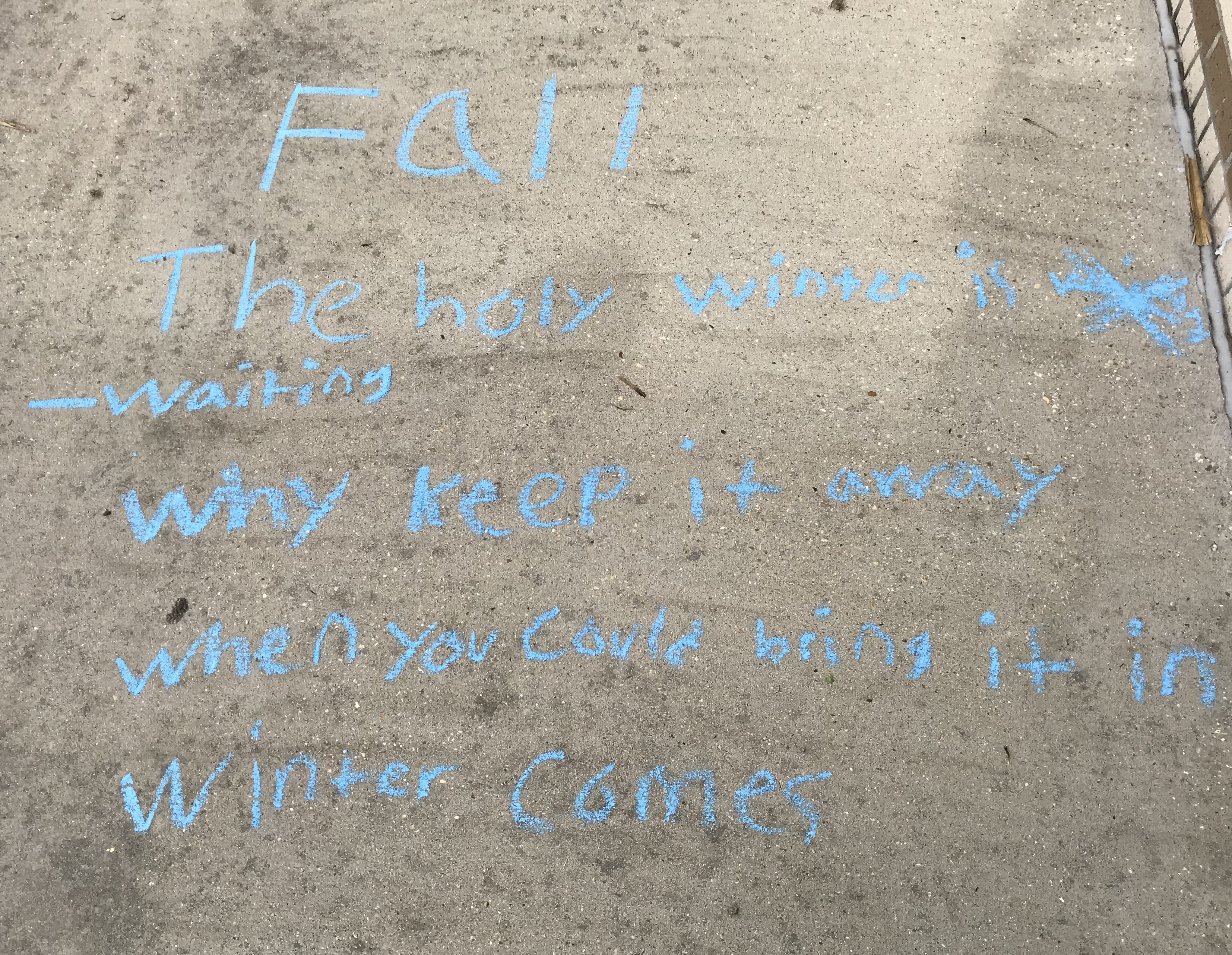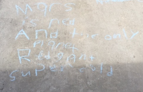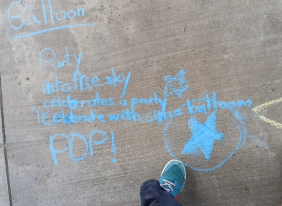 Sometimes, my kids blow me away with their poetry. Austin was not willing to share in the classroom, but he did chalk his poem. Austin’s been reading books by Jason Reynolds. I feel like he channeled Jason in his poem.