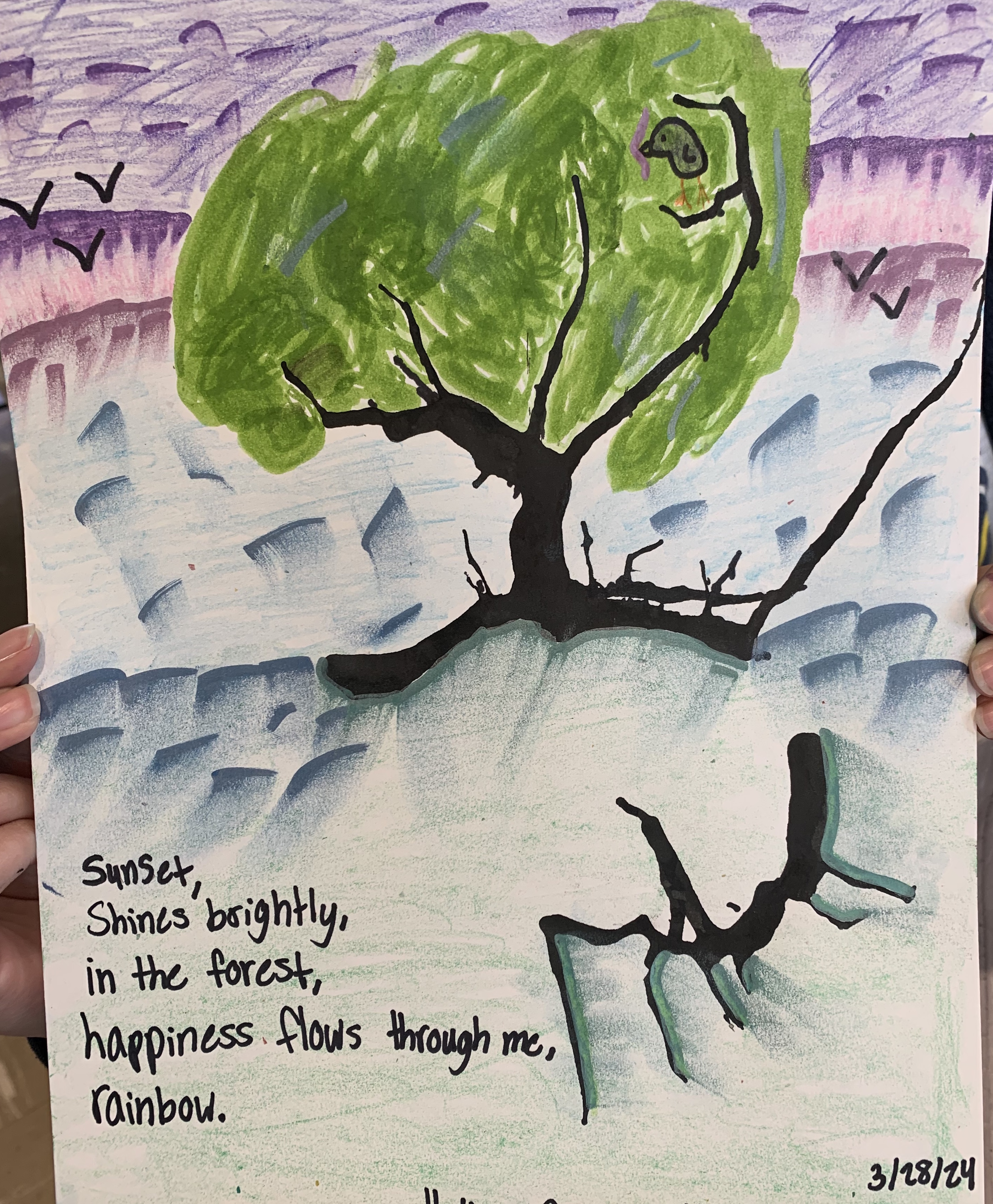 Denise Gallagher, a local author, illustrator, and graphic artist led the students in an abstract activity using small straws and India ink on paper. Enjoy the gallery of art. Some students wrote poems to accompany their creations.