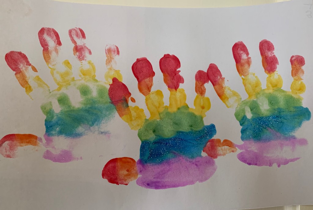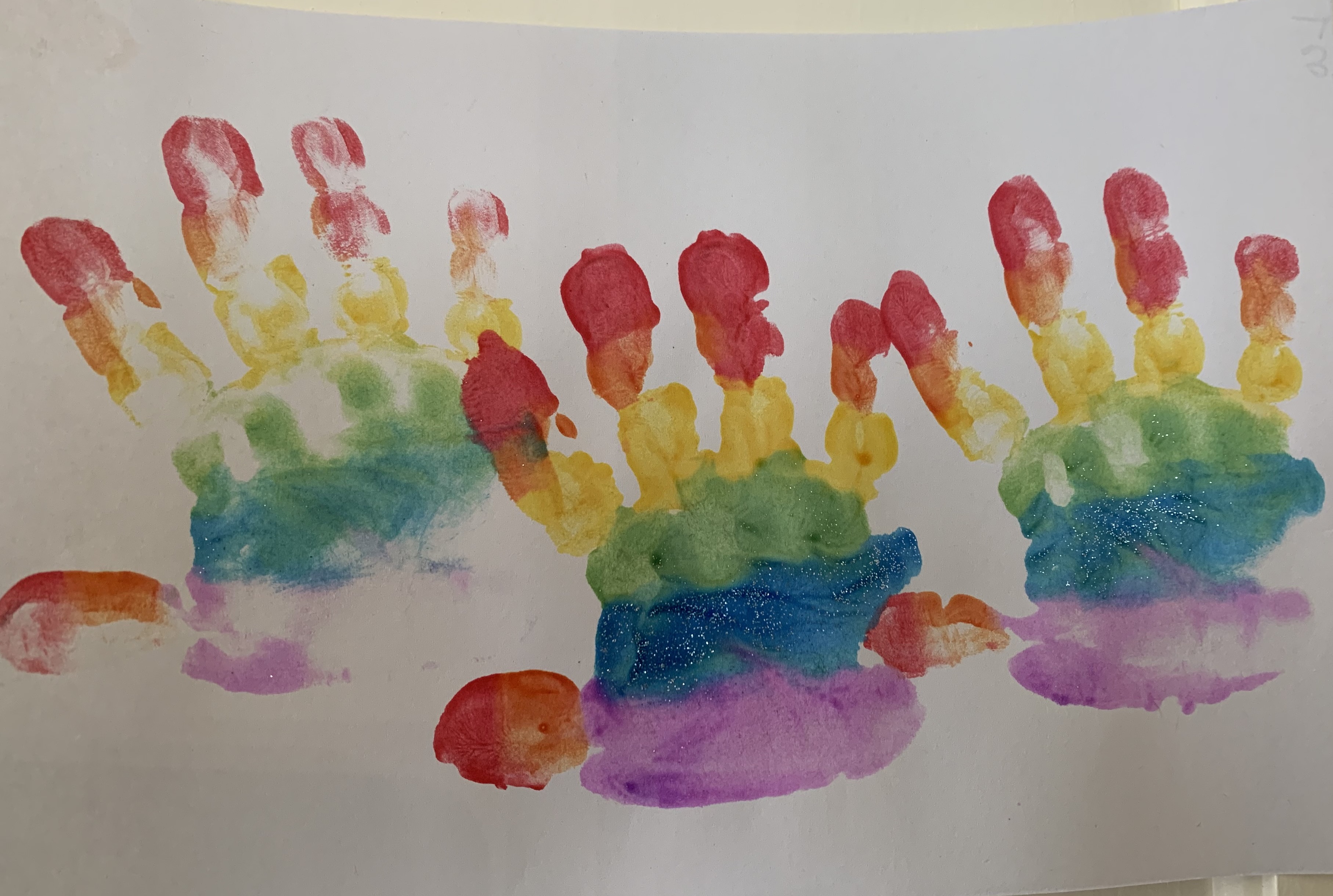 Usually on this weekly photo prompt I post a photo from nature. But this week I wanted to try something new. Abstract art by my grandson, Leo. He loves doing art, especially painting. His parents are proud of his work and place it in a gallery on the kitchen wall. Obviously Leo’s daycare teachers have an amazing amount of patience and skill to get this art piece. Is it possible to recognize someone by their handprint?