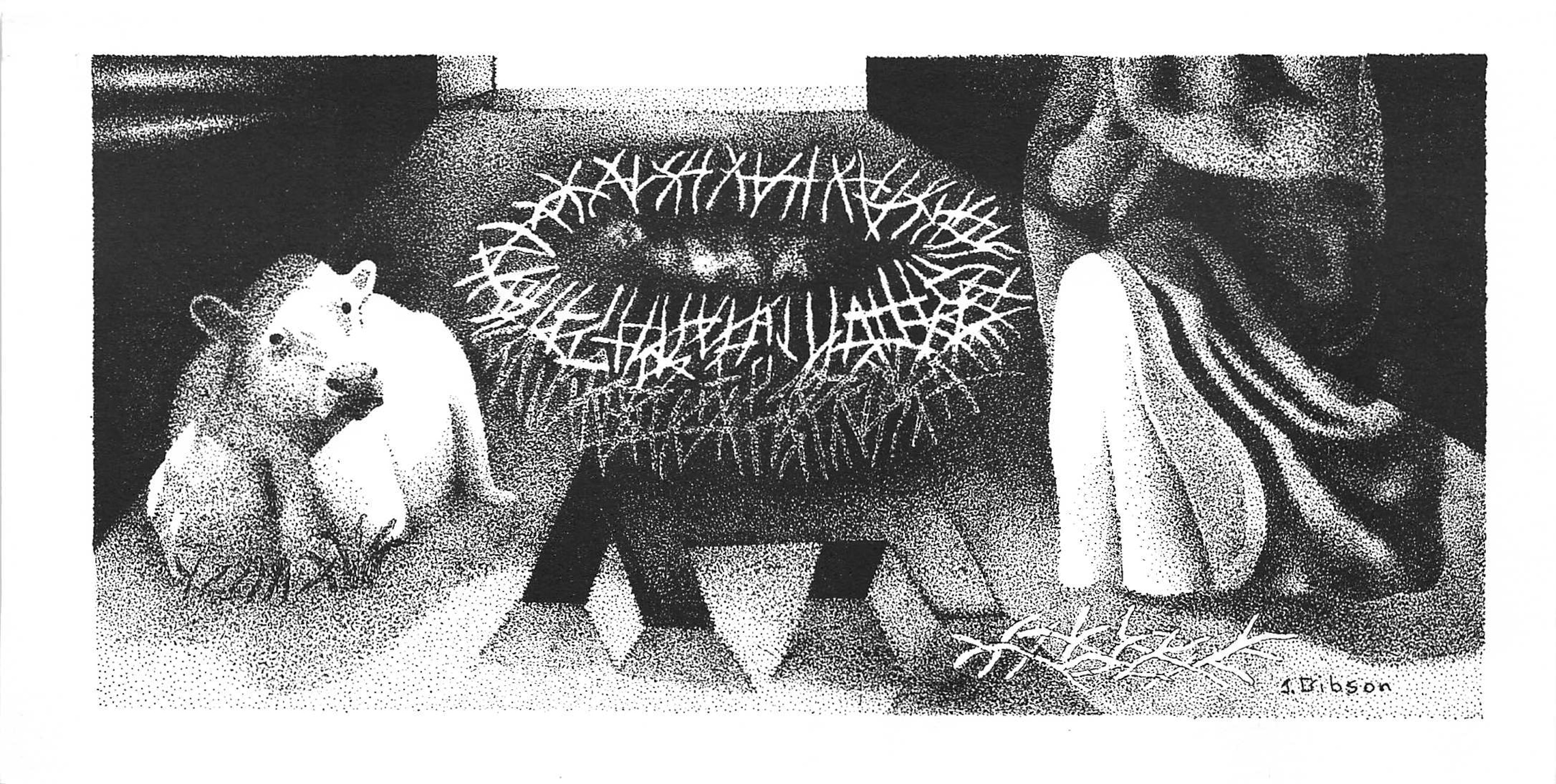 My father, John Gibson, is an artist who created art cards for years. In 2013, I created poems to accompany each card and collected them into a small chapbook, Illuminate. Today, I am featuring one of these cards and its poem.