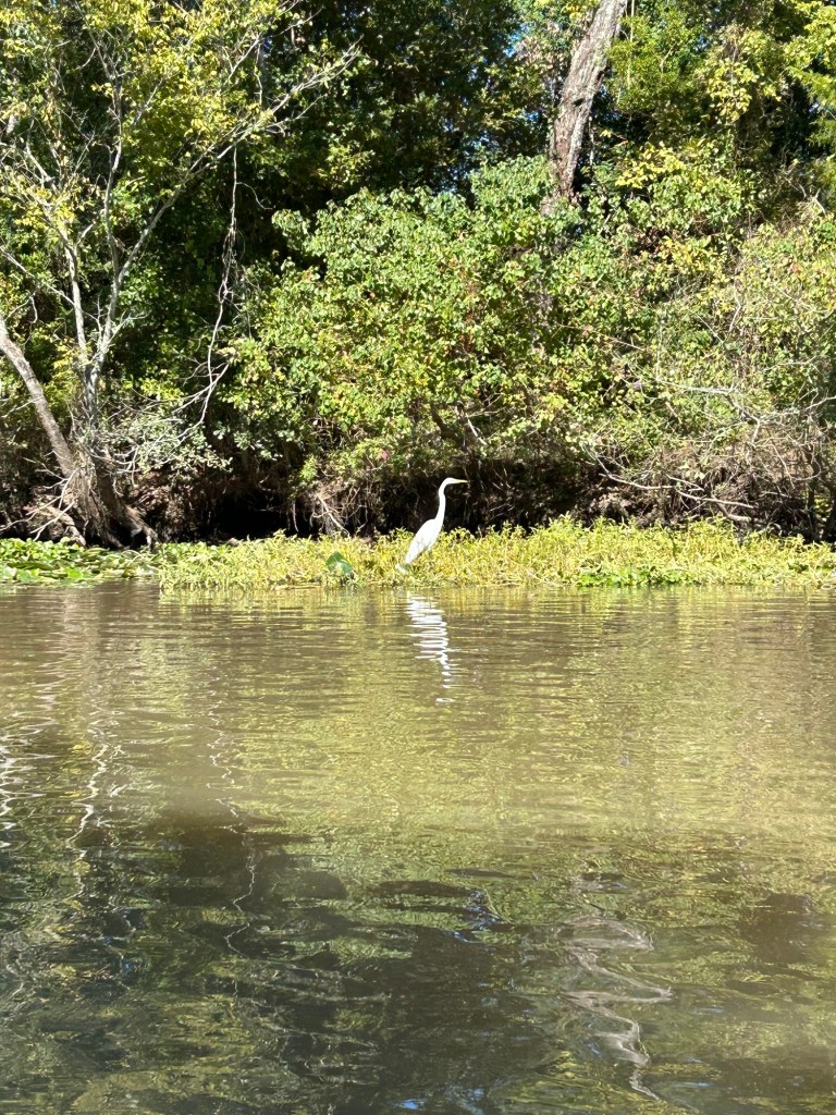 Last weekend we kept two of my grandchildren overnight. It was an opportunity to get them out in the canoe on the bayou. Leo is almost 7, so Jeff decided it was time to put him in the front to paddle. He doesn’t have a powerful stroke, but he knows how to put the paddle in and push. He was also very curious and aware of the nature around us. We watched an egret fly from place to place as we got closer to it.