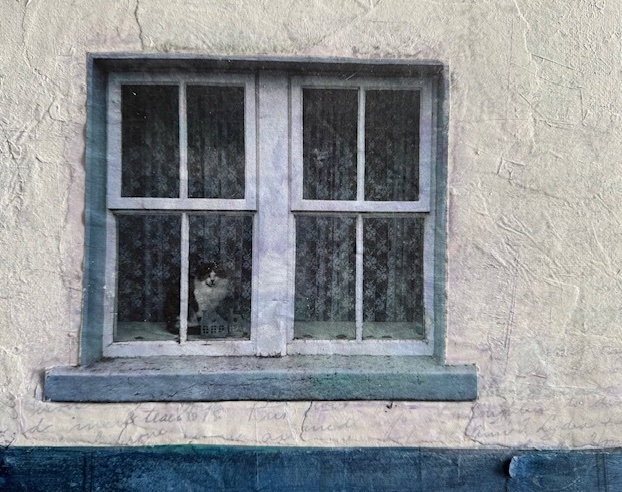 Jone wrote, “The piece you like is a mixed media piece. I have been playing with landscape scene. This was a cat in Kilcullin, Ireland, 2022. This has some pieces of my grandmother’s journal(copied). It’s part of a new exhibit in April.” Congratulations to Jone on her upcoming exhibit.