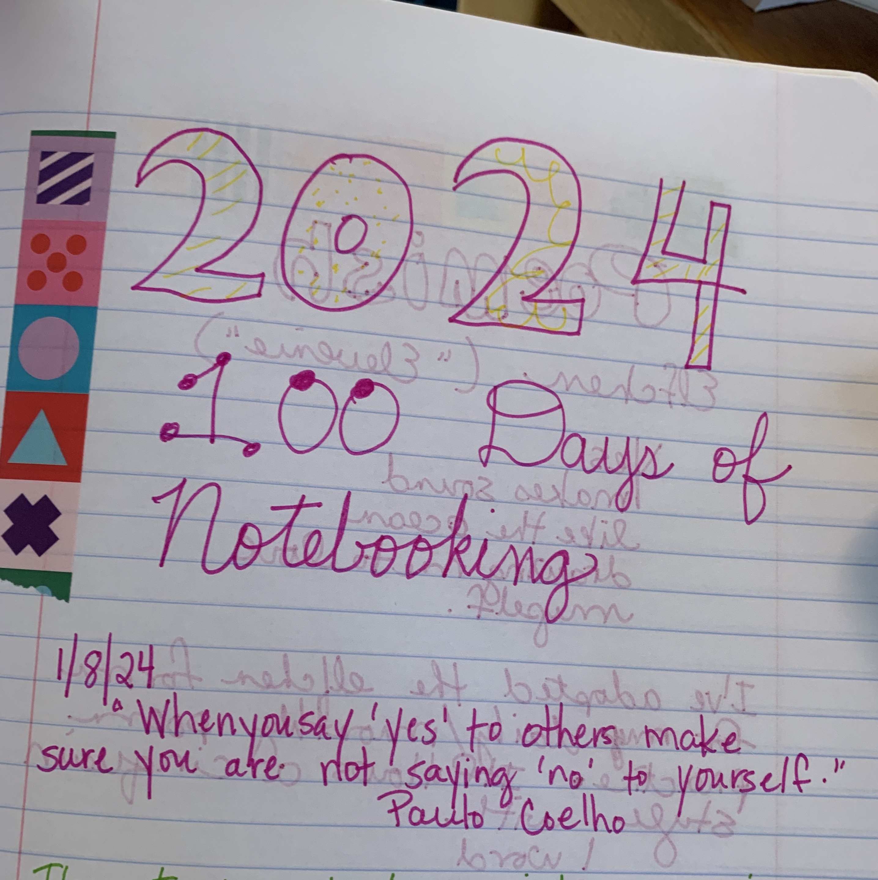 The first day back from our holiday break, my students were excited about the idea of beginning the year with 100 Days of Notebooking (à la Michelle Haseltine) and One Little Word.
