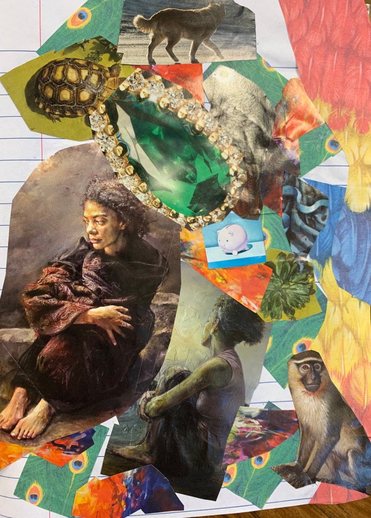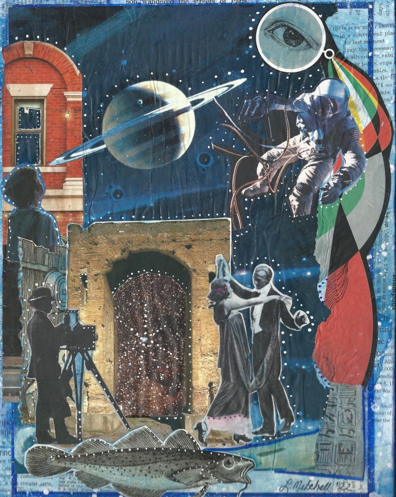 I signed up to do an exchange for Spark Art #50 with my friend Inkling Linda Mitchell. Linda creates wonderful collages, so I asked her to do the exchange with me. She sent me a collage and I sent her a poem. She was charged with creating a collage from my poem and me with creating a poem from her collage. Fun, right? It is fun when you are playing with a friend you know will be respectful of your work and who does good work herself.