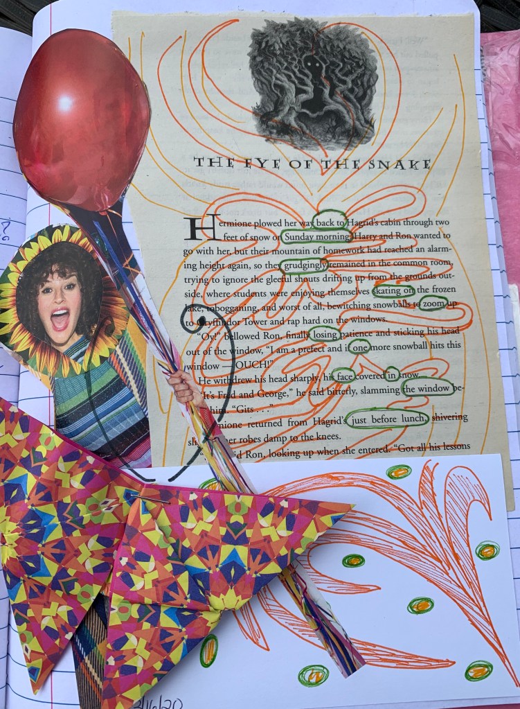 The first thing I noticed was the moon. I wrote the title first, “Moonlight Sonata” and played Beethovan’s Sonata for inspiration. I noticed the foreign words. I asked Linda about the flowers, but she didn’t know what they were. I decided they were edelweiss. I got stuck, though, and decided to use a poem I had written for Laura Shovan’s February project and combine it with the work I was doing on responding to the collage. I don’t usually do this, and it created a level of mystery to the poem. And I’m OK with that.