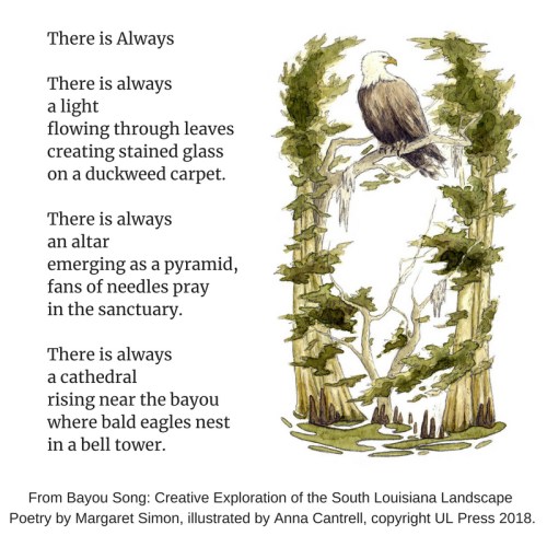 I could write a bayou poem about it always raining.  In my new book, Bayou Song, I have a few favorite poems.  Like children, it’s hard to pick a favorite, but today I am thinking about the poem There is always…