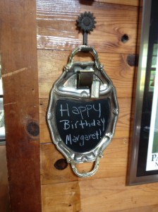 I had never been to my friend’s cottage before. When I walked up to the door, I immediately felt peace. Next to the steps was a huge sugar kettle goldfish pond. A large metal sign with a Louisiana scene held fast to the cottage wall. Once inside, I was greeted by a salvaged silver tray made into a chalkboard and saw “Happy Birthday Margaret!” My own book Blessen sat on the top of a stack of books on the coffee table. In a corner of the living room stood an easel with a stool, a perfect spot for my computer with a view of the yard outside. The backyard was scattered with various bird feeders and houses. Hummingbirds flew to the red liquid while cardinals perched at the bird feeder. Bluebirds are nesting in houses and sat on the fencing. Beyond in the pond surrounded by elephant ears and cattails, a great white egret flew in to a landing. What a gift this place was!