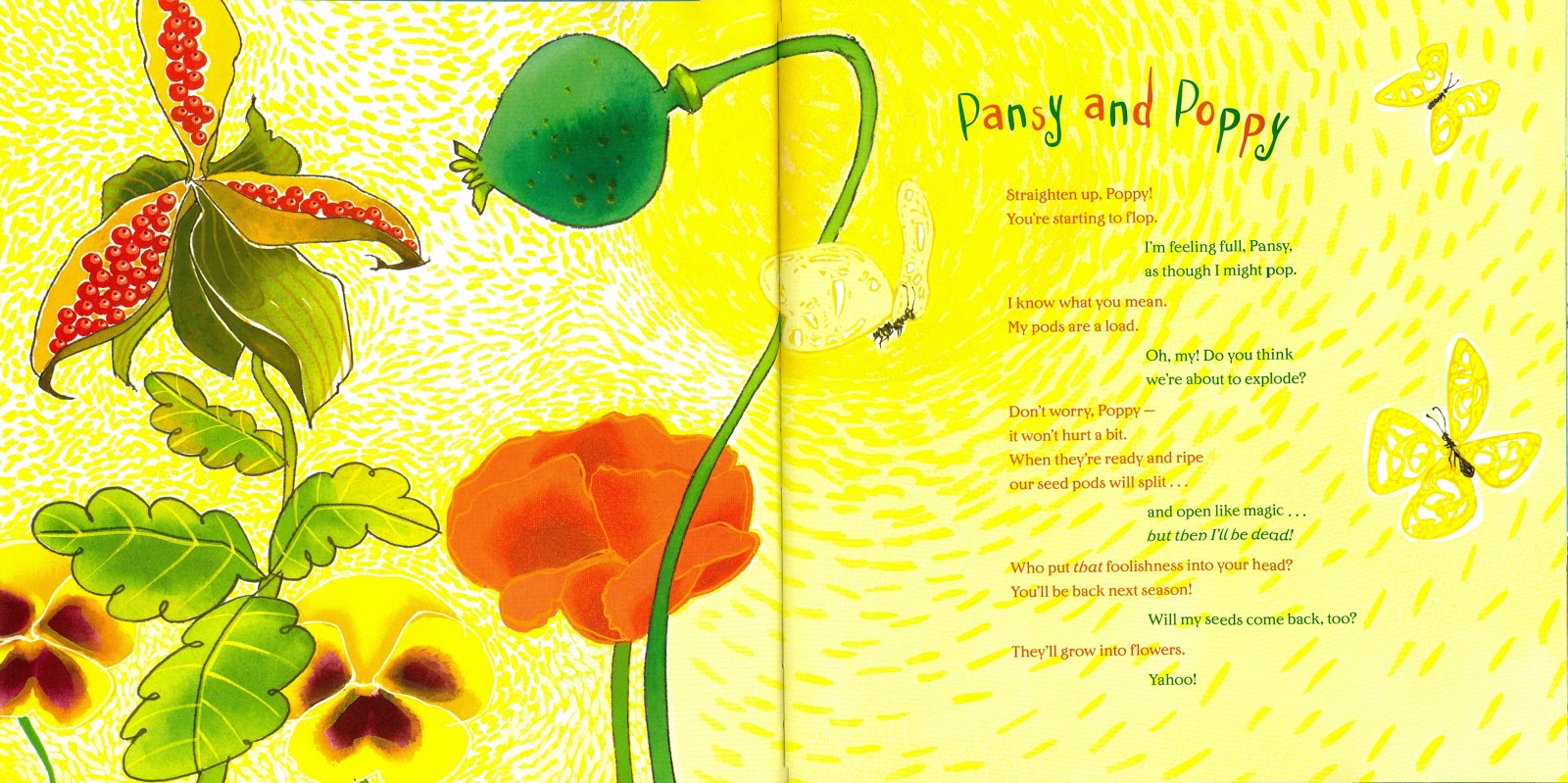 I love when poetry comes together with reading aloud and learning science. This book combines the joy of choral reading with the learning of new facts about seeds, bees, butterflies, and more! We even learn that seeds are dropped in bird “doo.”