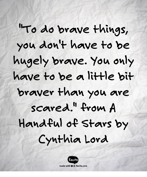 Last week I wrote a Slice of Life post about the injustice of reading levels and my dear student Emily. Cynthia Lord, author of A Handful of Stars, saw my post and commented that she wanted to send Emily a signed copy of her book. I was overjoyed, but I kept it a secret. The package arrived Friday with a few added trinkets Cynthia sent straight from her desk. She sent a small rock bearing the words “A little extra brave.” Cynthia wrote to me that she carried this rock around as she worked on the book. So personal. So special. She also added a little star hanging on a string to symbolize “star friends” like the characters in her book. Another personal touch.