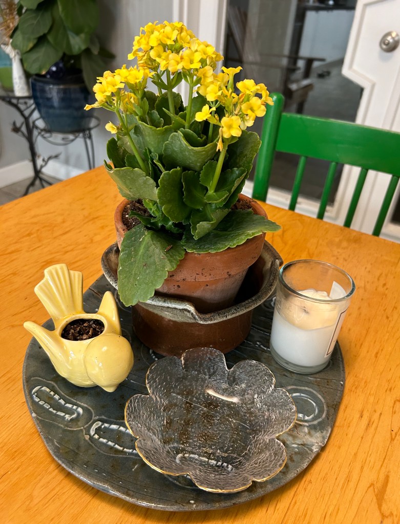 When I opened my email, I had a word-of-the-day from Merriam-Webster that included one of my favorite words to say, Tchotchke. Looking at my kitchen table where I am writing, I see a dish sent to me from my daughter’s mother-in-law. It touches me that in the midst of cancer treatments she had the thoughtfulness to send me a gift. It may just be a knickknack, but the deeper meaning is the love it was sent with.