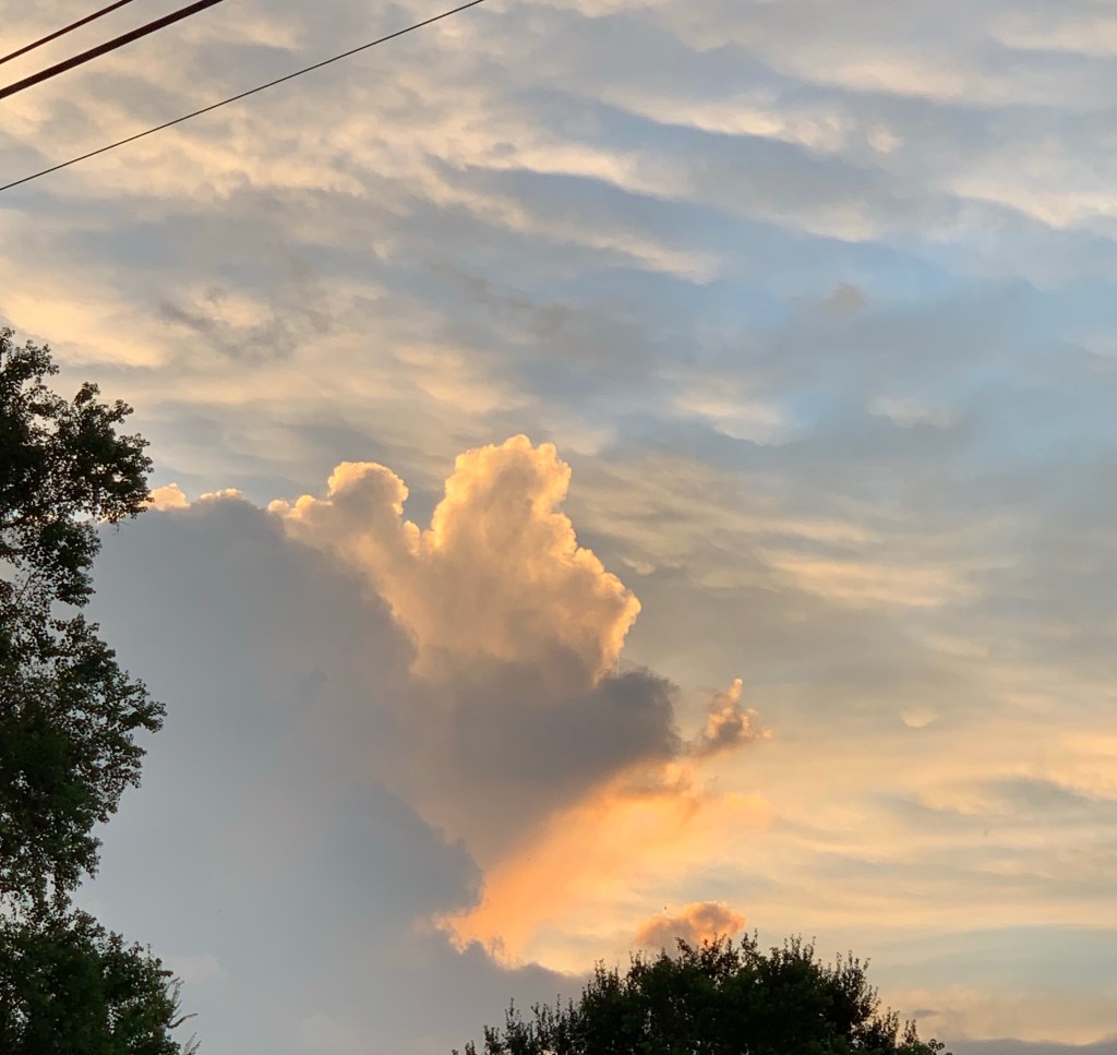 I almost forgot it was Wednesday. Yesterday was the first day of my work week because we had Monday off for Hurricane Ida, which thankfully did not impact us directly. When I walked Tuesday morning, this beautiful cloud led me. I held my phone up high to capture this photo. Clouds always draw my eye, especially ones with the sun within them.