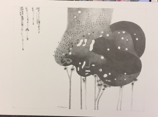 The photograph became the inspiration for his abstract drawing.  My dad works with pen and ink in pointillism.  Each drawing is a miracle.  I celebrate this creative gift.