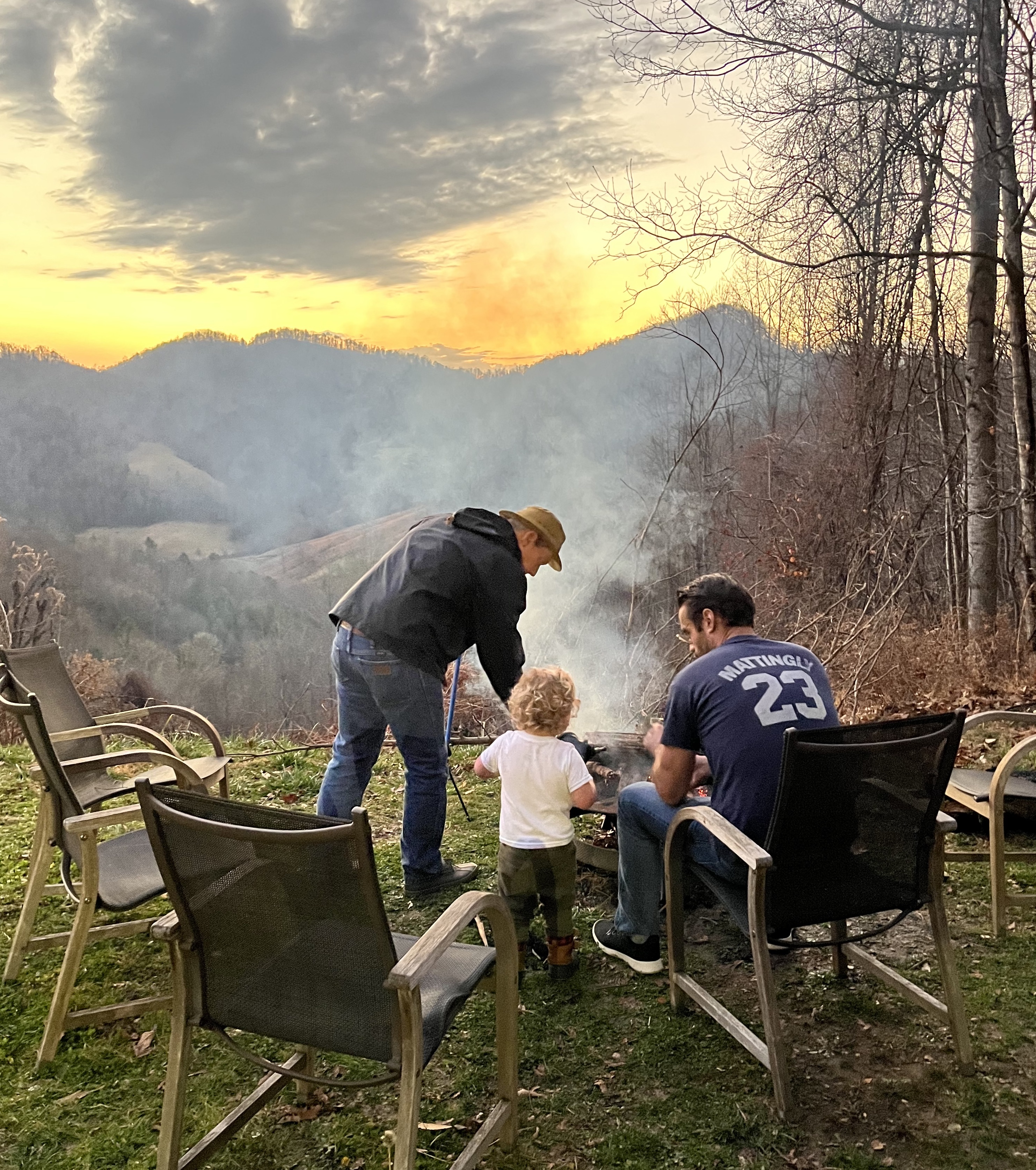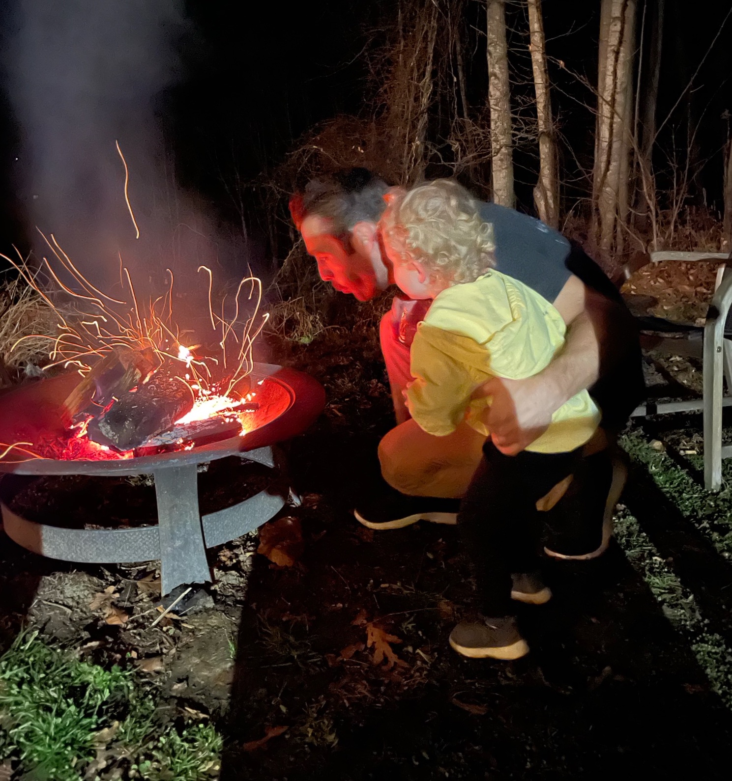One of my favorite photos from our family trip to North Carolina became my muse. The guys enjoyed making nightly fires in the fire pit outside our mountain house. The toddler boys enjoyed participating (at a safe distance) in blowing on the fire. My daughters captured the scene in two photographs.