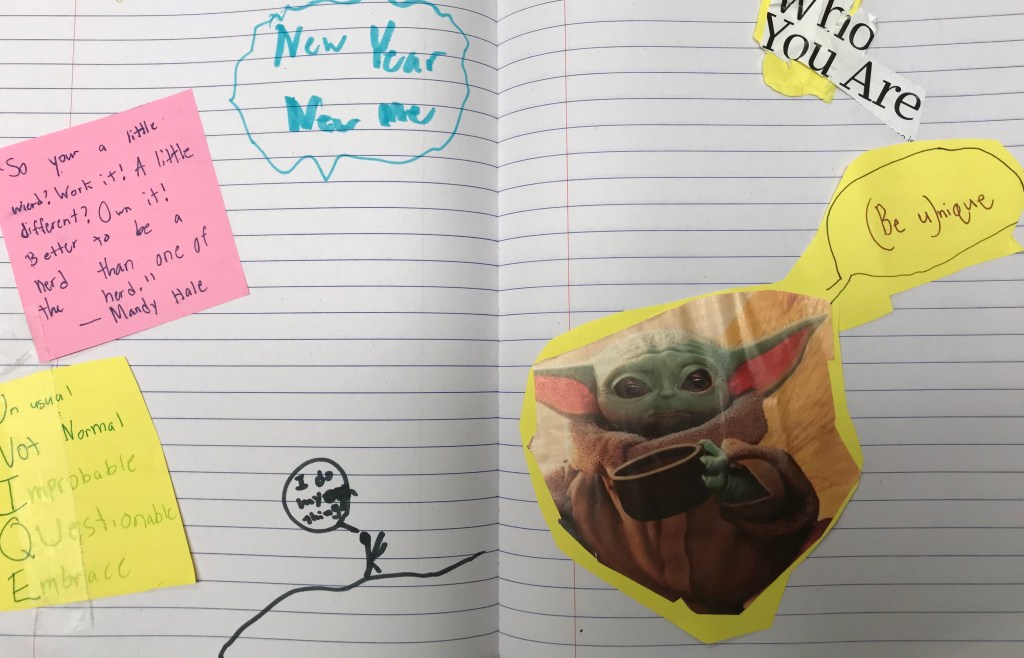 The first day back from our holiday break, my students were excited about the idea of beginning the year with 100 Days of Notebooking (à la Michelle Haseltine) and One Little Word.