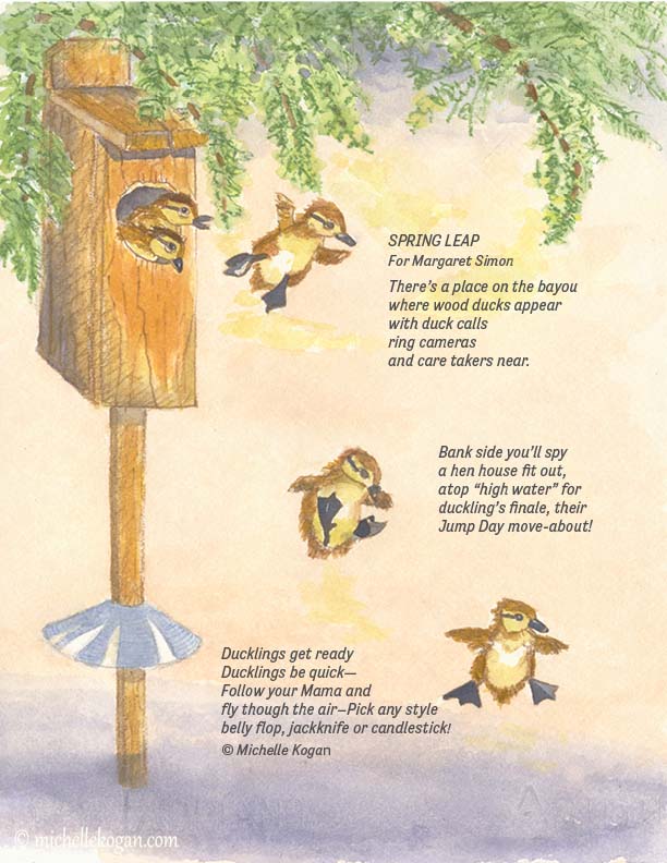 I love how Michelle’s poem captures the essence of Joy we feel when we see the ducks jump from their nest box.