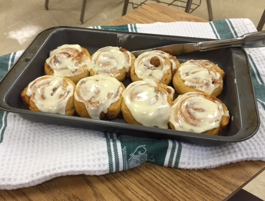 Because I have small groups of students, I am able to celebrate birthdays with a special treat. Vannisa wanted cinnamon rolls and apples and the apple peeler. I have an old fashioned apple peeler that spins the apples and slices in a spiral. My students love it, and it’s become a favorite for birthdays.
