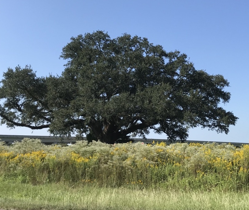 Every day I drive by a mighty oak tucked between the frontage road and the highway, Mr. Al. In South Louisiana, the oldest oaks are named and cataloged and cared for. Mr. Al has had an interesting journey as he was transplanted by the state highway department about 3 years ago. He is thriving in his new home.