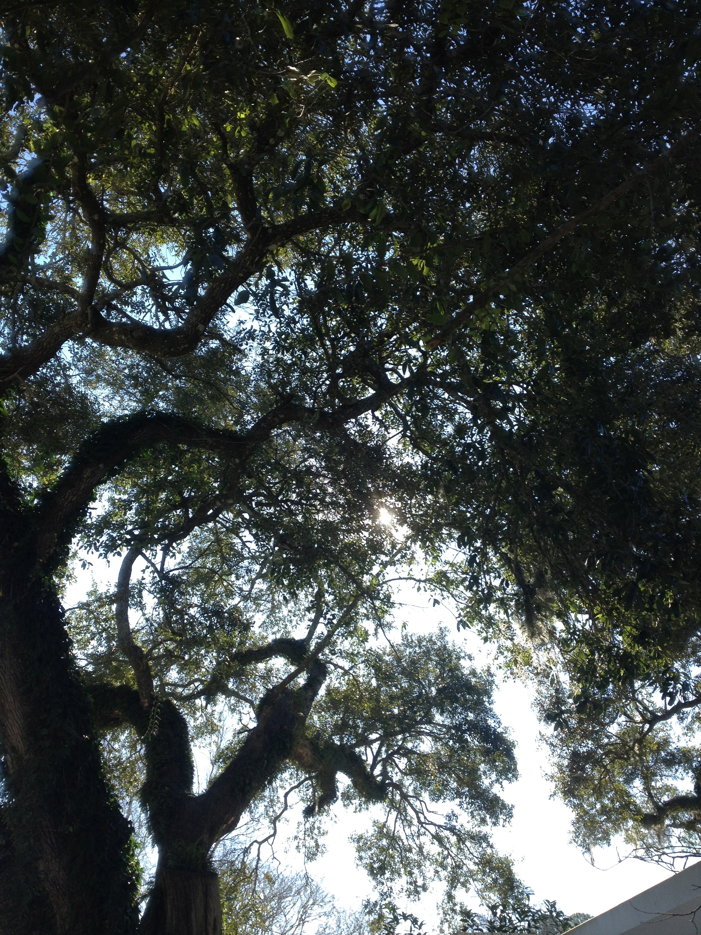 I took a walk out in the new light, the sun high in the sky warming the cool day, and I looked up into the live oak. These trees are so much a part of my life. They give me strength and hope. The sun was shining through the evergreen leaves clinging to the branches. In that moment, I knew I had to be one of those branches REACHing for the Light.