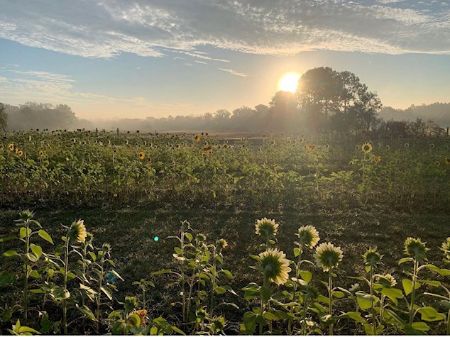 As Autumn arrives, the arc of the sun shifts. The sky can show us the seasons if we learn to watch. One of my former students, a young mother, lives on a farm where they grow seasonal sunflowers. There’s a crop in the spring and this year, another in the fall. They open up on weekends for “you pick” days. I follow her on Instagram and have a totally romantic view of life on a farm. It must be hard work, especially with the hot, dry days we’ve had this fall. Nevertheless, this image popped up on my feed and I thought it wanted to be a poem.