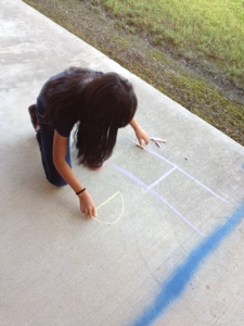Before we took the break, V. was writing at the computer. She saw the google doodle and played with the changing ink blots. She announced, “I see a cat with wings.”