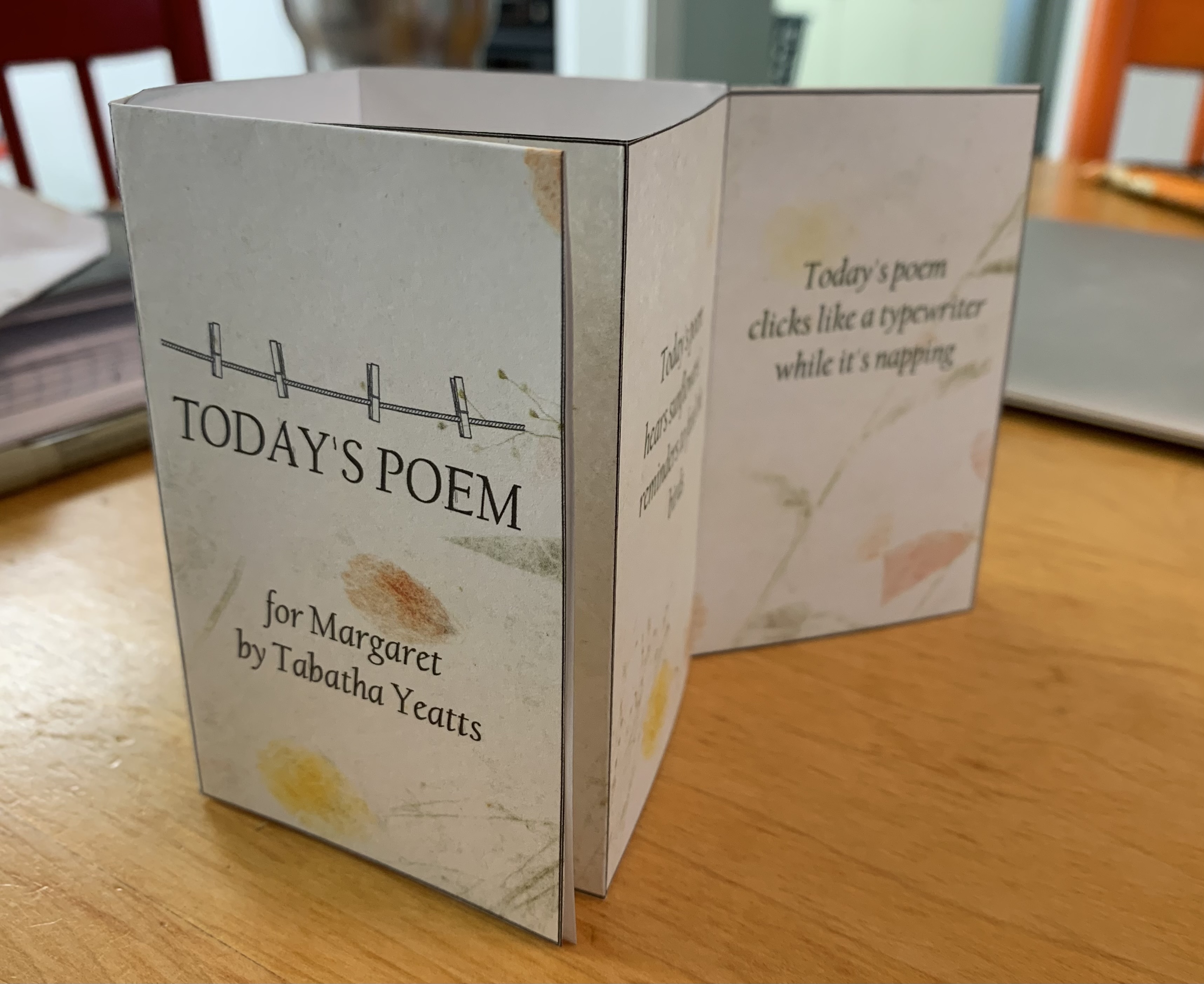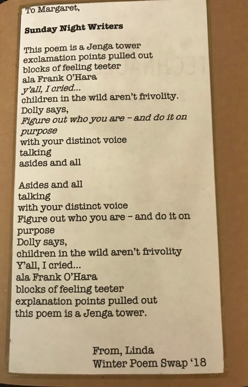 Tabatha Yeatts of The Opposite of Indifference coordinates a poetry exchange. She sent me a poem she wrote based on a podcast she heard and thought of me. I love this Poetry Friday community and how we share poems as well as life events. Thanks, Tabatha for sharing your creativity with me.