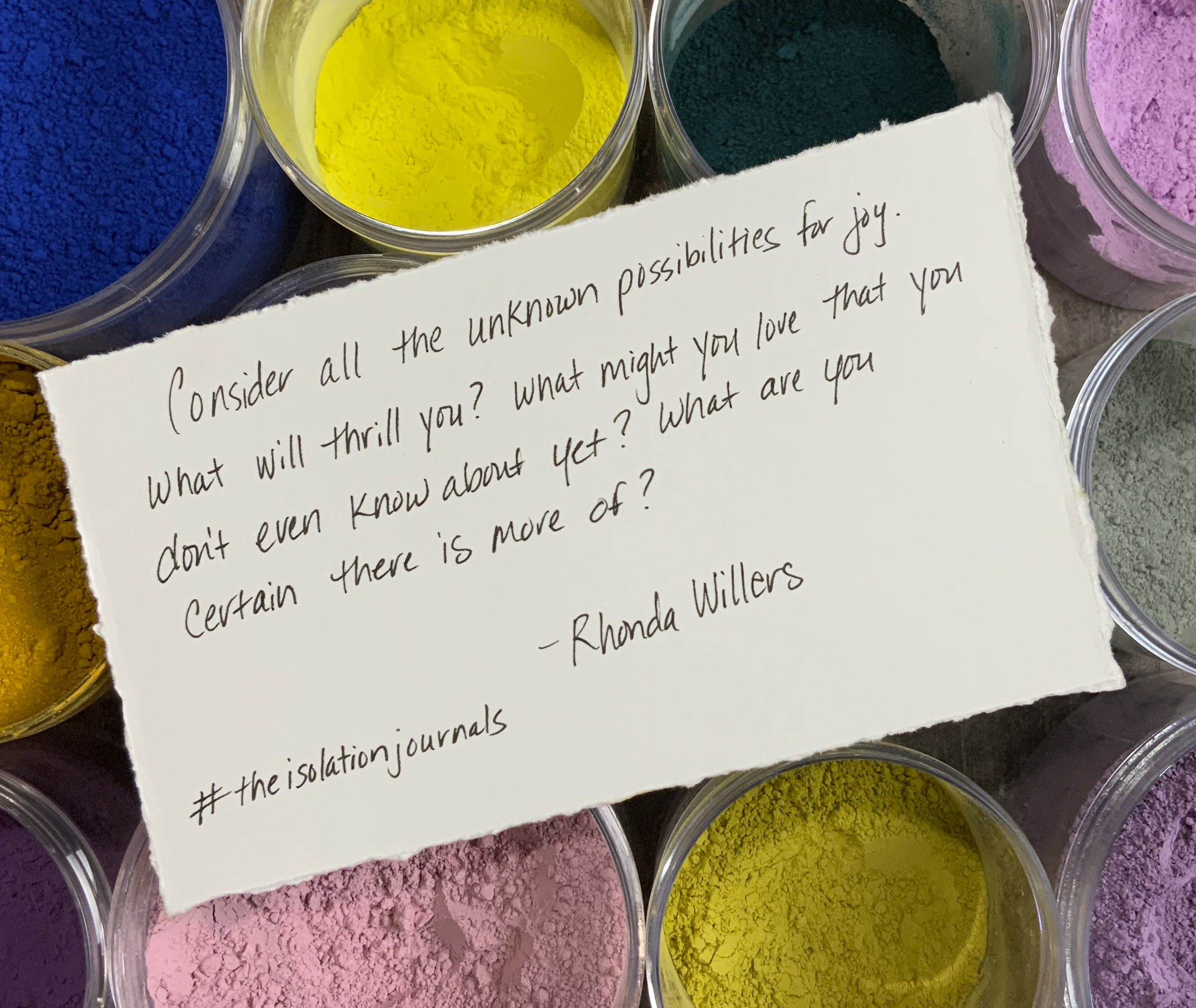 I have subscribed to The Isolation Journals for years and often read the prompts but don’t do them, usually because I read them at a time when I don’t have time to stop and write. They usually speak to me, but perhaps there is a little intimidation happening with me as well. I don’t know. I try to keep my doubt under control, but it’s not always that easy.