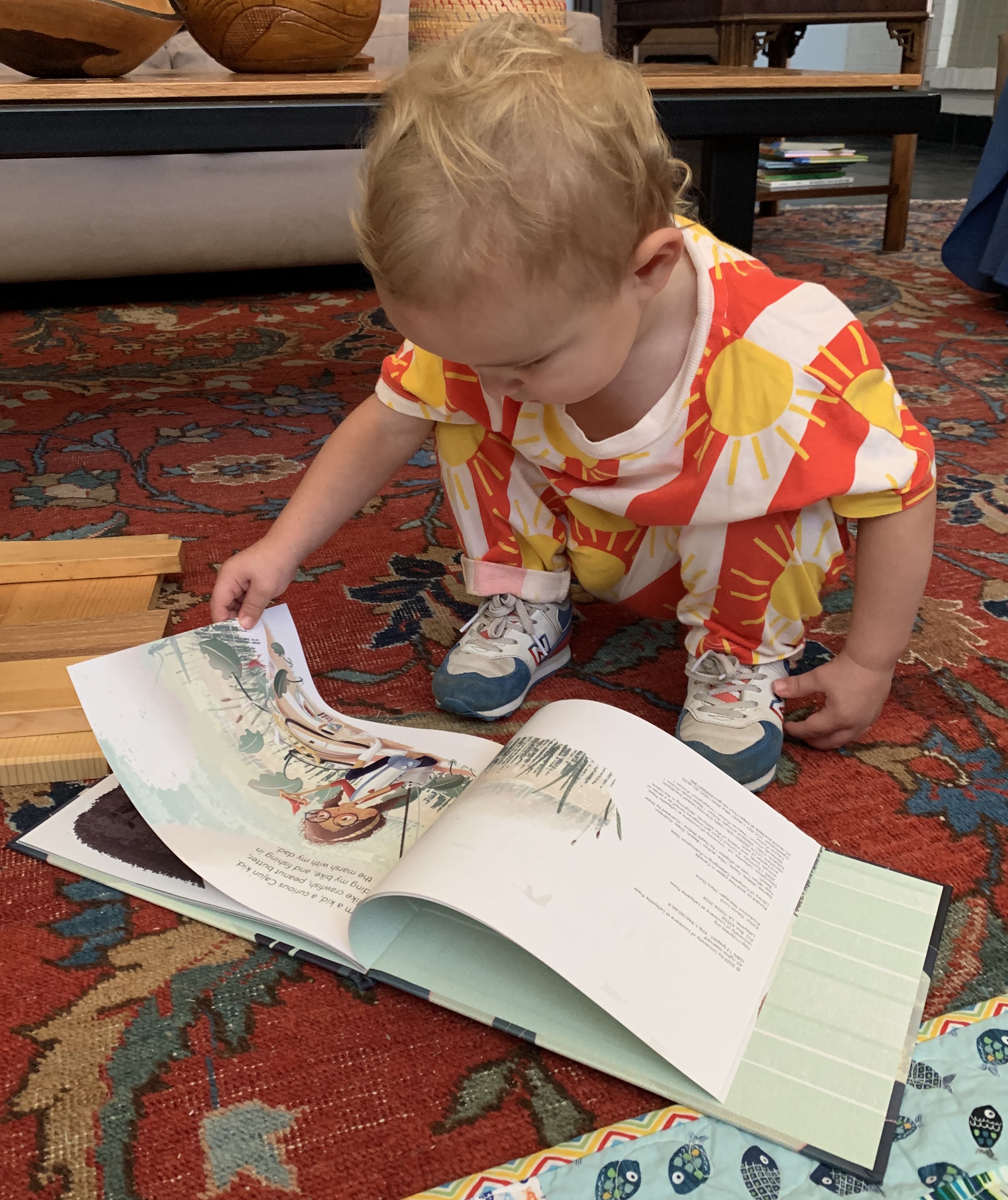 Leo, 22 months, is also a curious Cajun kid who loves crawfish and peanut butter. He says, “crawfish, yum!” and “Ba-butter” for peanut butter.