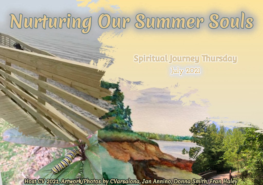 This morning I turned the calendar to July and wondered where my summer is going. Carol invited us to write about Nurturing our Summer Souls for Spiritual Journey first Thursday. I thought I would wake up early and write, but the thing about summer is expectations fall into the sun. I woke up tired. The only thing I can figure is the water aerobics class last night has affected me in more ways than I thought possible. I have welcomed these classes, the time with friends, the cool of the water, and the invigorating feeling of exercise. But this old body is finding muscles that have been dormant. It’s a good thing, right? Remind me.